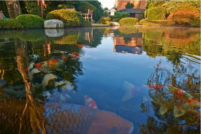 一個寧靜的池塘,外面的世界是繁雜的,這里卻充滿寧靜。請記住,沒有必要使池塘相當大,但它要為錦鯉漫游提供充足的空間。