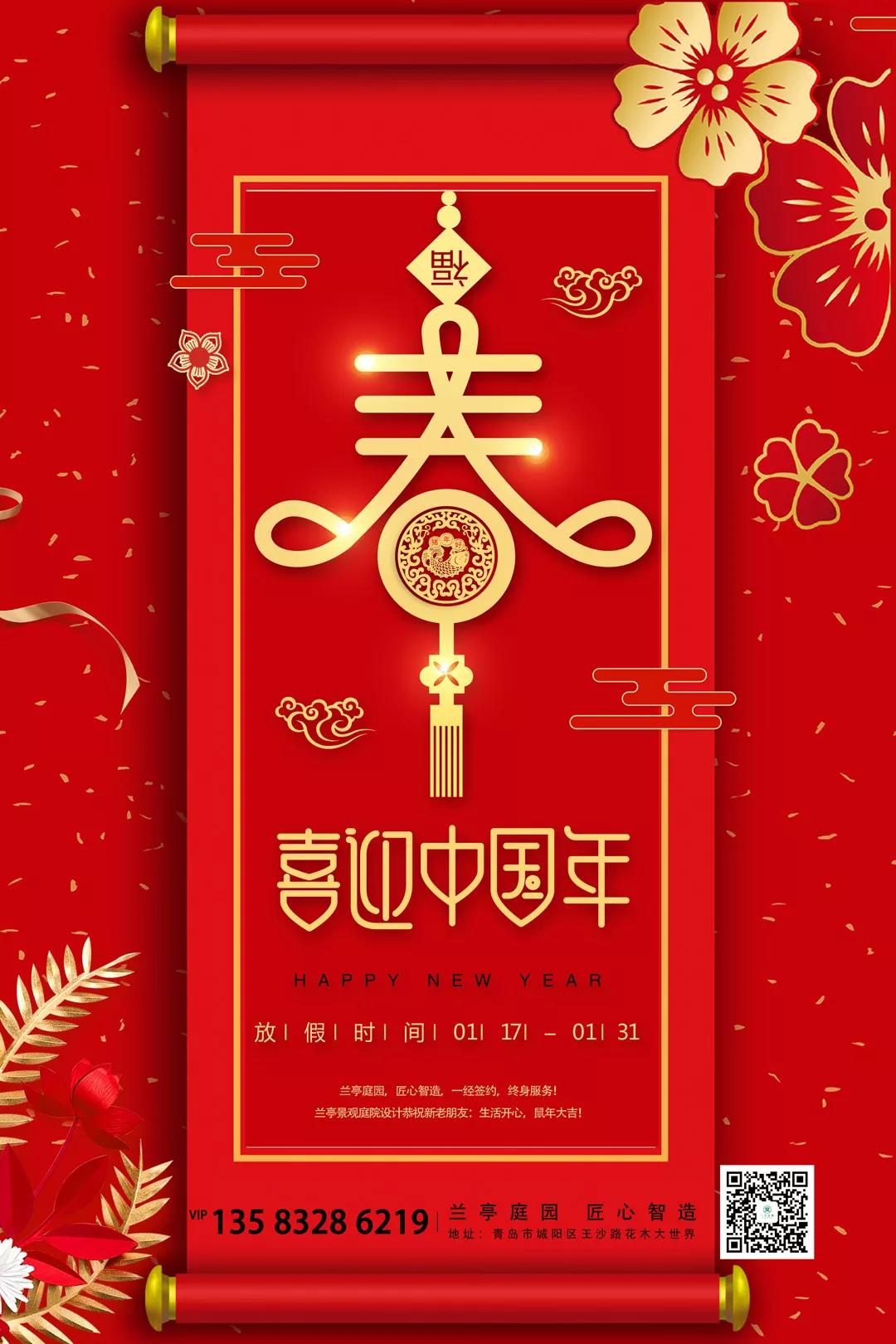 春節放假通知 來源:別墅庭院營造專家 點擊次數:4912 發布時間:2020/1/16 12:25:13 關注蘭亭景觀庭院設計 別墅庭院設計|屋頂花園設計|民宿景觀設計|錦鯉魚池建造 服務熱線:13605321758、13583286219 官方網站:m.gwdb.com.cn