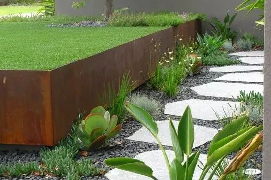 園路的鋪裝也有很多種形式,石、草坪搭配汀步等等,可以按照自己的喜好來選擇。